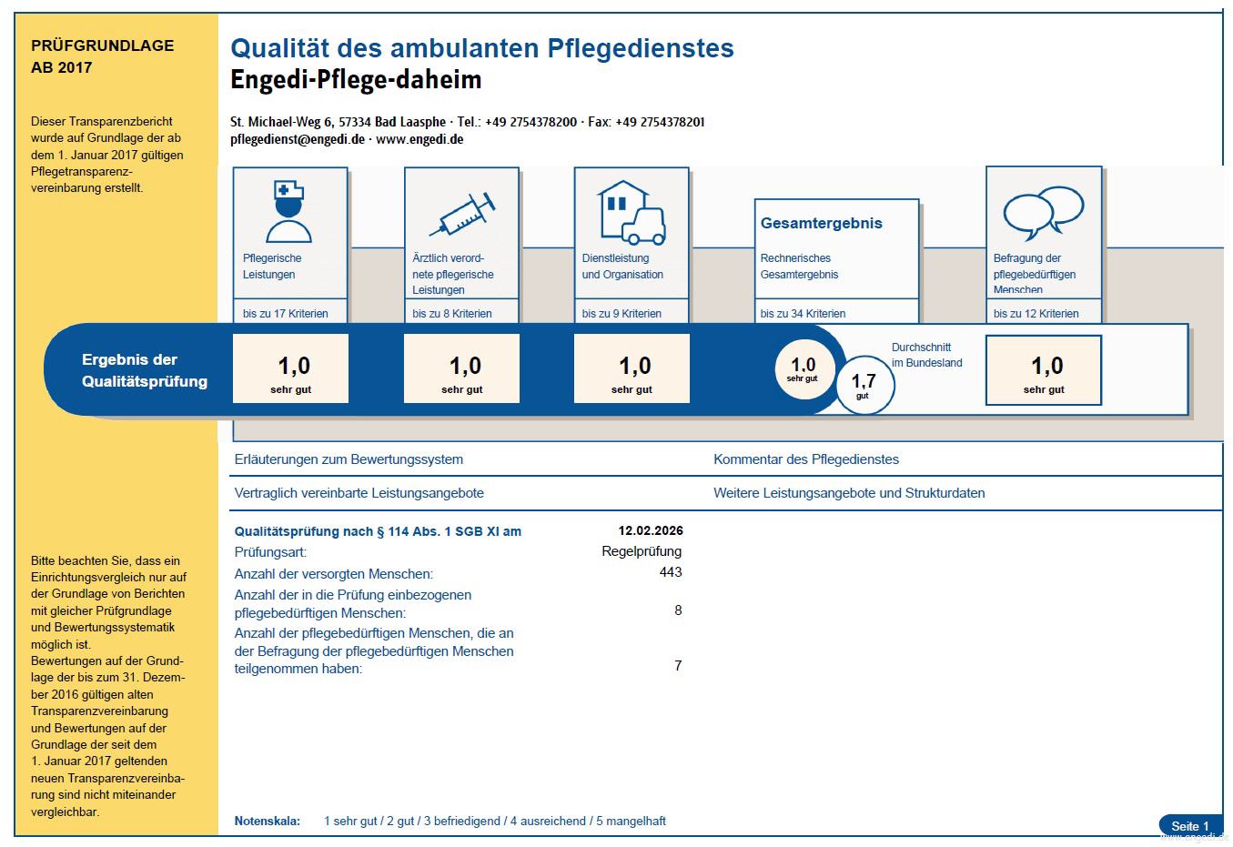 Weitere Details zum Prüfergebnis und die Ergebnisse anderer Pflegedienste im Vergleich finden auch auf www.pflegelotse.de und www.pflegedienstnavigator.de
