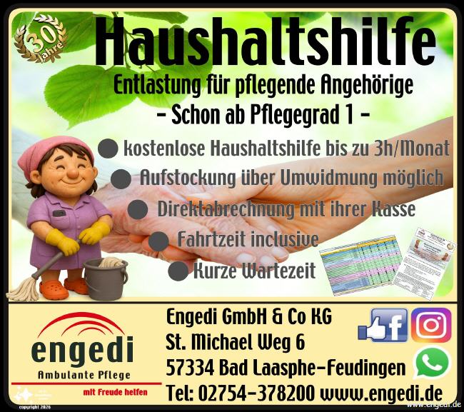 Seit 2018 bieten wir Unterstützung bei der Haushaltsführung oder Betreuung an und unterstützen mittlerweile rund 200 Kunden in ihrem Haushalt. Wir legen dabei Wert auf Ihre Zufriedenheit. Unsere Mitarbeiter bemühen sich, die Arbeiten nach Ihren Vorstellungen zu erbringen, nehmen sich aber während der vereinbarten Zeit den Moment für ein persönliches Gespräch, wenn Sie einfach mal jemanden zum Reden brauchen.